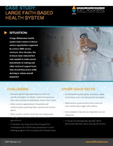I hired ESP to support an Asset Management project at a mid-sized IDN in Central Pennsylvania. This specific Asset Management program’s goal was to create significantly more value within Clinical Engineering by increasing the quality of service delivery and clinical management while reducing their operating costs. We exceeded our goal. We identified and fixed as many operational and quality issues as we saved money. I personally believed the process ESP uses would create a definitive solution. At the end of the process we had two excellent solutions, and we selected the one that we were sure would drive higher quality outputs, processes and database system. The program is going very well, and customer satisfaction is quite high.